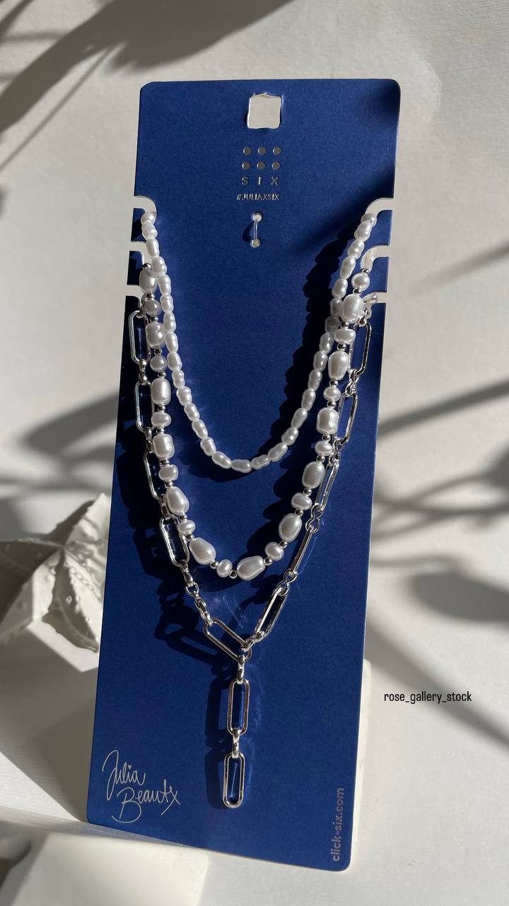 گردنبند چندرجی کارتیر و مروارید برند SIX (کالکشن Julia Beautx) - نقرهای