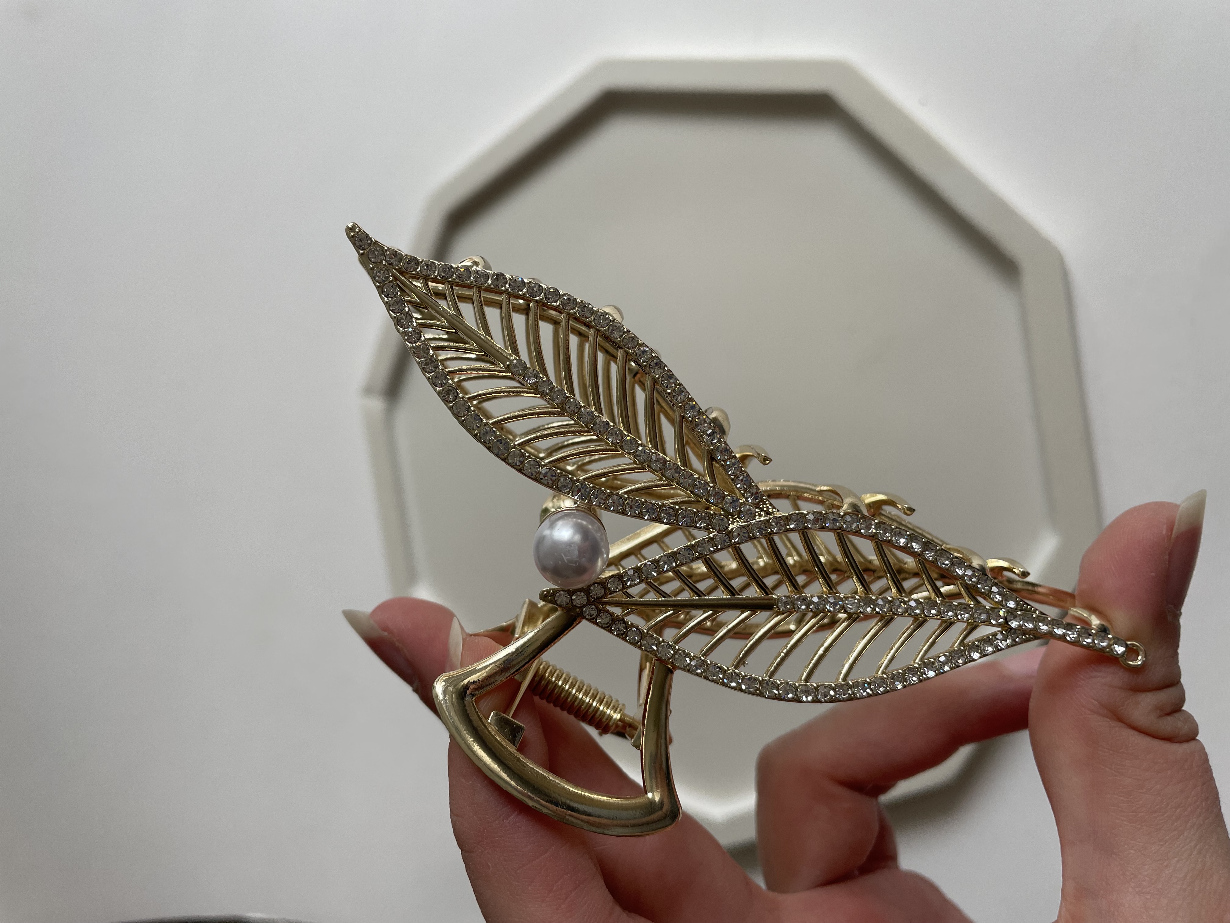 کلیپس فلزی طلایی مدل برگ