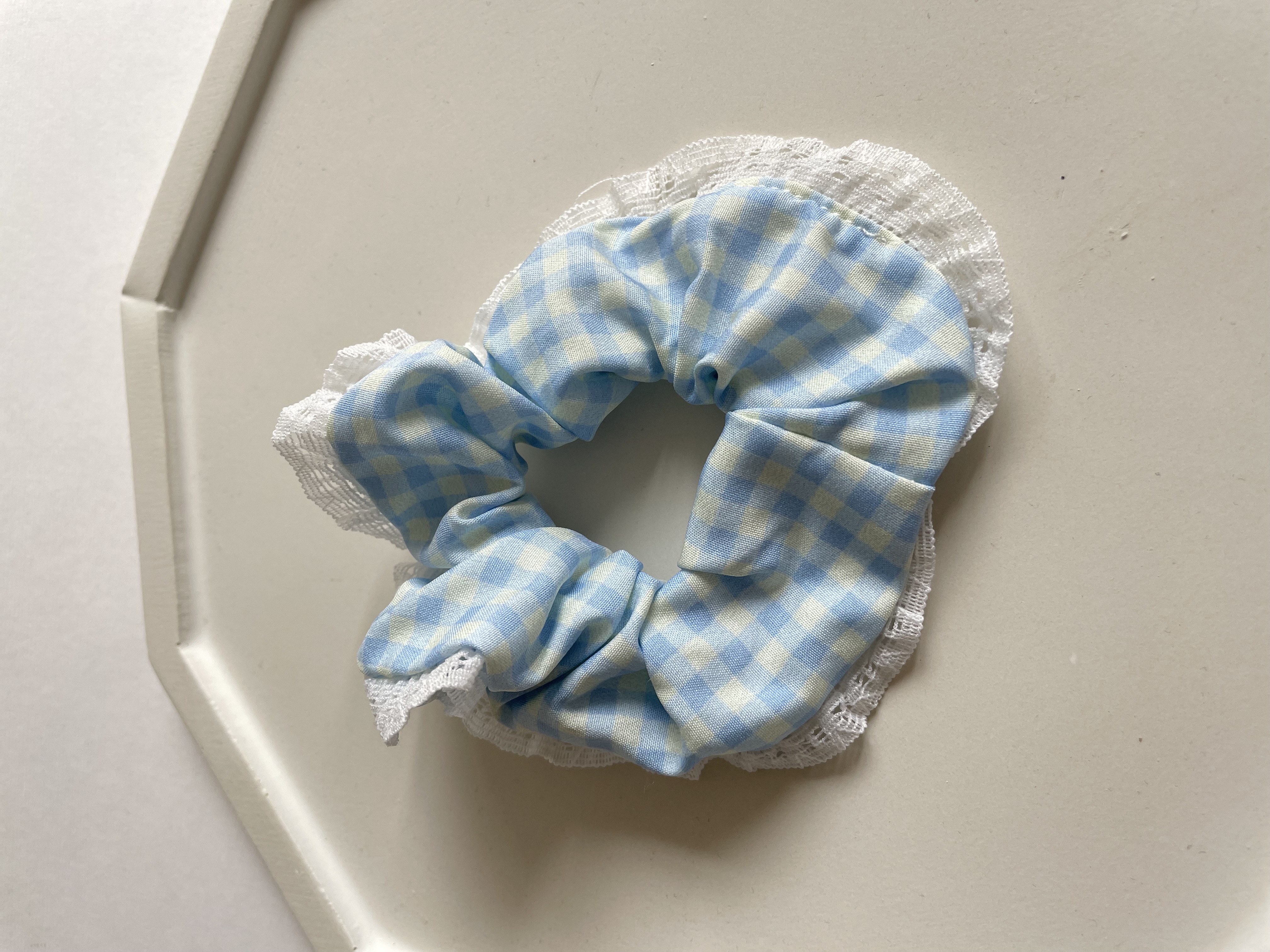 اسکرانچی مدل چهارخانه (Gingham) با لبه توری ظریف