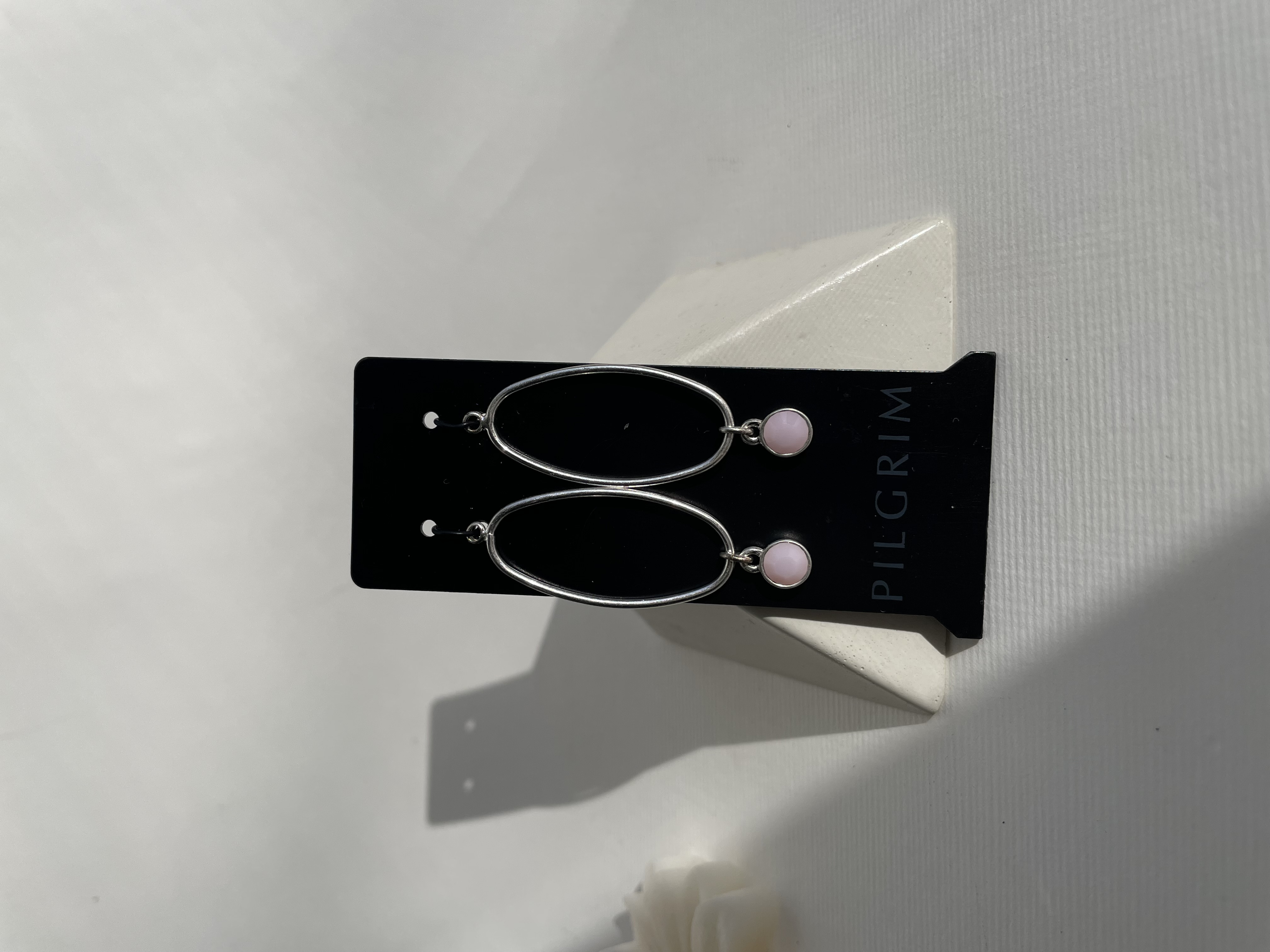 آویز گوشواره پیلگریم Pilgrim مدل بیضی مینیمال با نگین صورتی صدفی