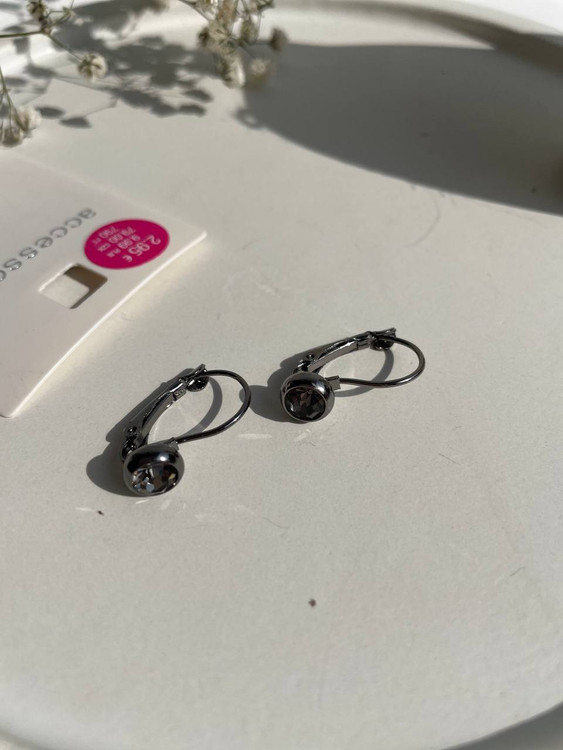 یک جفت گوشواره حلقهای با طراحی ظریف و شیک، دارای نگین کریستالی براق. رنگ مشکی این گوشواره، آن را به انتخابی خاص و متفاوت برای استایلهای رسمی و روزمره تبدیل کرده است.