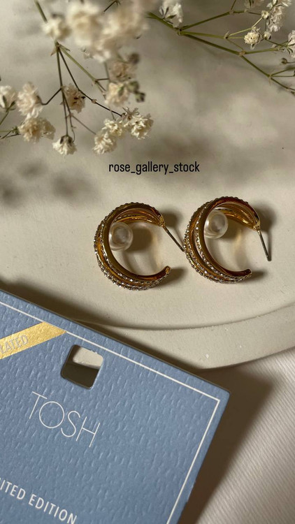 این گوشوارههای حلقهای زیبا از برند TOSH با طراحی خاص و آبکاری طلا، جلوهای لوکس و منحصربهفرد دارند. جزئیات ظریف روی حلقهها همراه با مرواریدهای کوچک در انتهای آنها، ترکیبی از کلاسیک و مدرن را به نمایش میگذارد. این گوشوارهها مناسب استایلهای روزانه و رسمی بوده و بهراحتی با سایر زیورآلات ست میشوند.