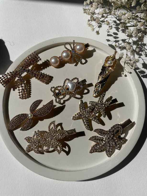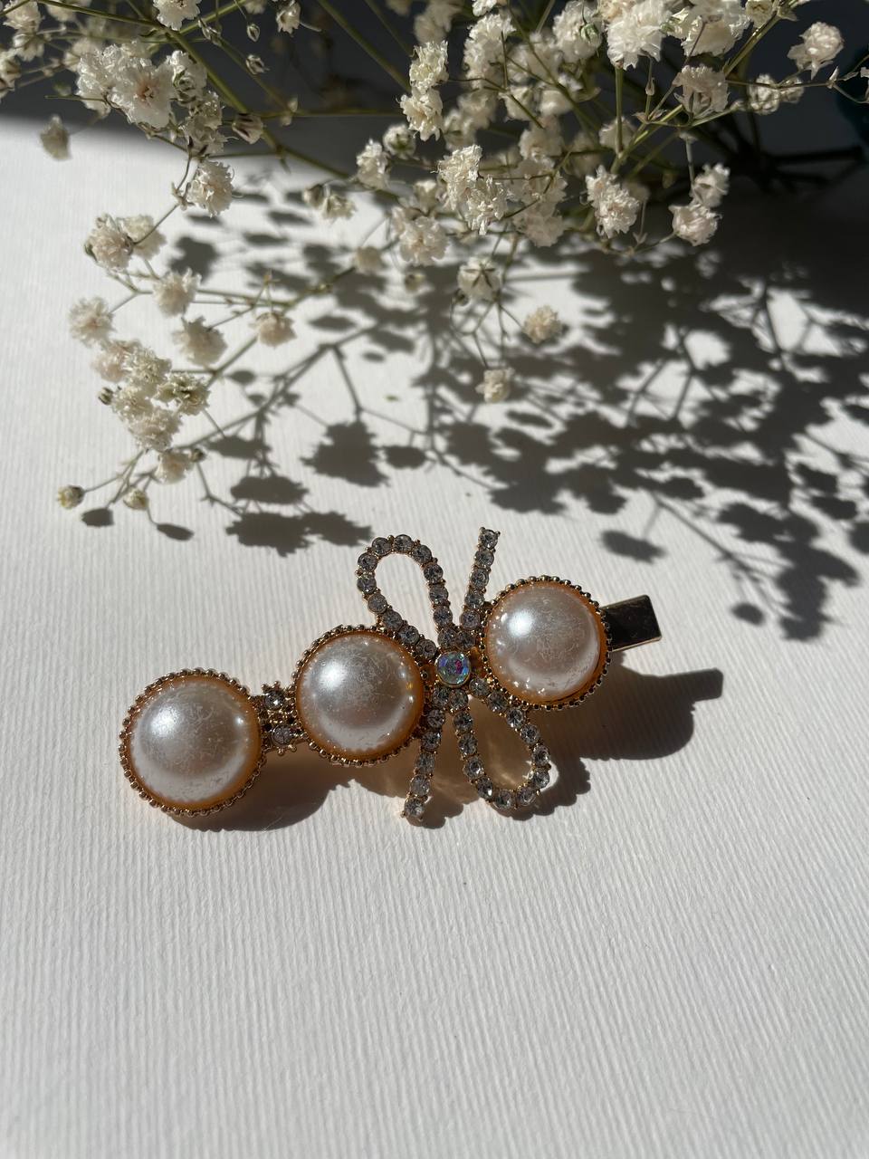 گیره مو مجلسی نگین‌دار و مرواریدی
