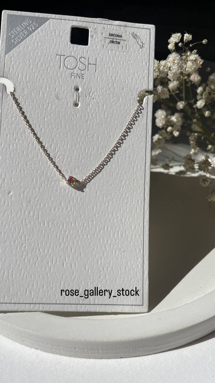 این زیور از برند آلمانی TOSH با طراحی مینیمال و ظریف، از نقره استرلینگ 925 ساخته شده و دارای نگین زیرکونیای چندرنگ است که درخشش خاصی به استایل شما میدهد. مناسب استفاده روزانه یا هدیهای خاص برای عزیزانتان.