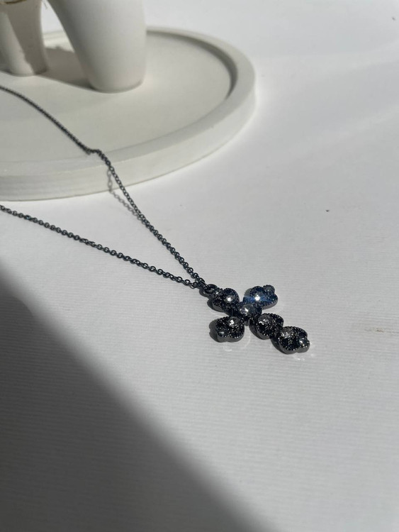 این گردنبند خاص با آویز صلیب مشکی درخشان، ترکیبی از جذابیت کلاسیک و استایلی مدرن است. نگینهای براق بر روی پلاک، در نور جلوهای چشمگیر ایجاد میکنند و زنجیر مشکی ظریف، زیبایی آن را دوچندان میکند. انتخابی ایدهآل برای کسانی که به استایلهای خاص و شیک علاقهمندند.