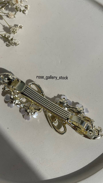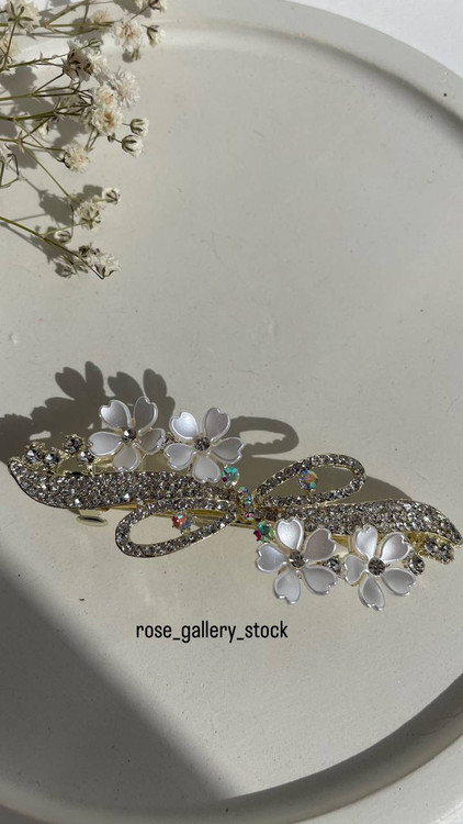 گیره موی مجلسی زنانه با طراحی ظریف گلهای سفید و نگینهای درخشان، انتخابی عالی برای مجالس، عروسی، مهمانیها و استایلهای رسمی. این اکسسوری زیبا با جلوهای درخشان، به راحتی در مو قرار میگیرد و استایلت را خاصتر میکند.
