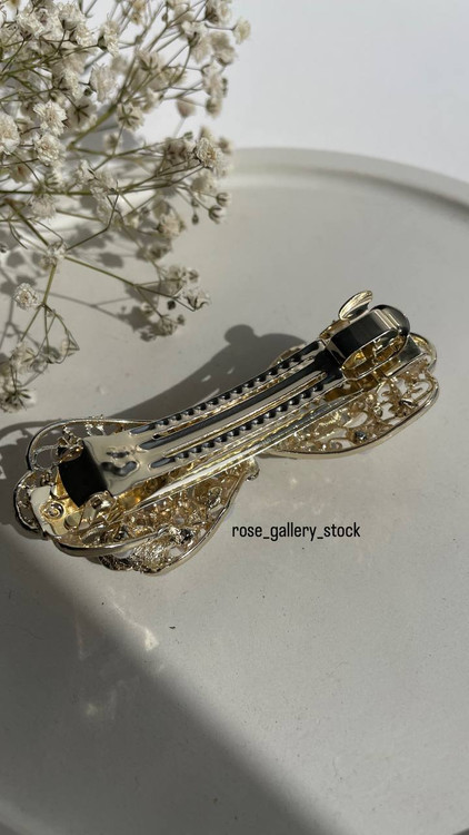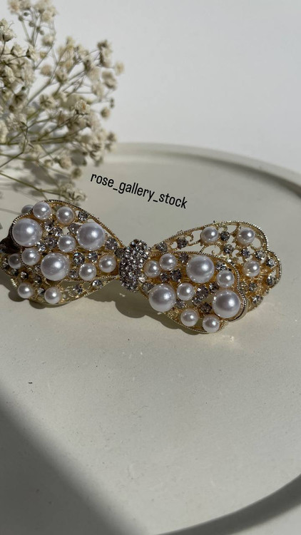 گیره موی مدل “پاپیون مرواریدی” با طراحی لوکس و زنانه، ترکیبی چشمنواز از مرواریدهای مصنوعی در اندازههای مختلف و نگینهای درخشان روی پایهای فلزی به رنگ طلایی است. این گیره برای مراسم رسمی، عروسی، و استایلهای کلاسیک یا سلطنتی انتخابی بینقص محسوب میشود.