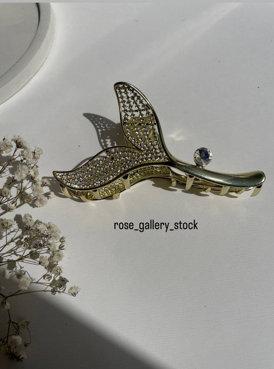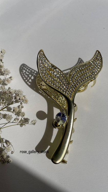 کلیپس خاص مرین با طراحی الهامگرفته از دم وال، نمادی از شکوه اقیانوس و آزادی است. رنگ طلایی براق در کنار نگینهای درخشان، این اکسسوری را به انتخابی خاص برای استایلهای زنانه و ظریف تبدیل کرده است.