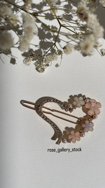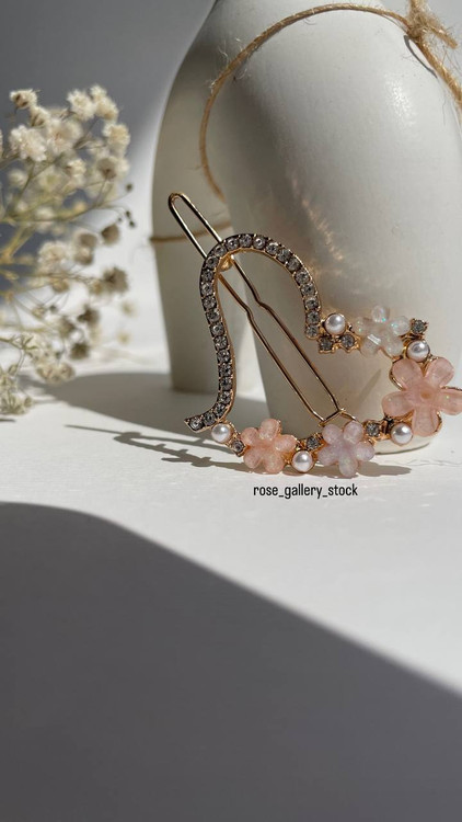 این گیره موی ظریف و زنانه با طراحی نیمدایرهای مزین به گلهای صورتی، نگینهای درخشان و مرواریدهای سفید، گزینهای عالی برای تکمیل استایلهای لطیف و رمانتیک است. طراحی منحصر بهفرد آن با جزئیات چشمنواز، جلوهای شیک و زنانه به موهای شما میبخشد.