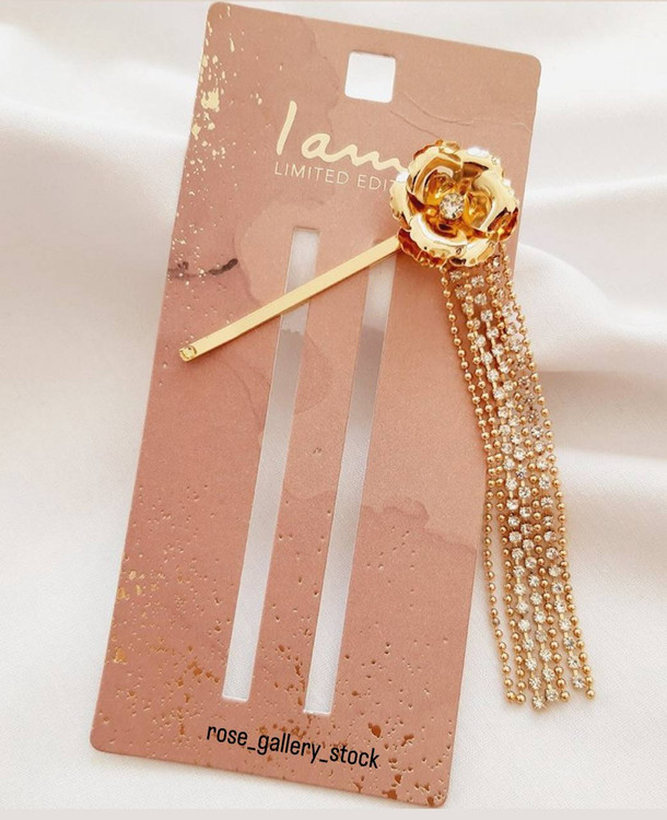 این سنجاق موی چشمنواز از سری محصولات «Limited Edition» برند Iam، با طراحی گل طلایی براق و آویزهای زنجیری کریستالی، گزینهای عالی برای استایلهای شبانه، مهمانی یا مراسم خاص است. ترکیب درخشش و ظرافت، آن را به انتخابی شیک برای بانوانی با سلیقهی خاص تبدیل کرده است.