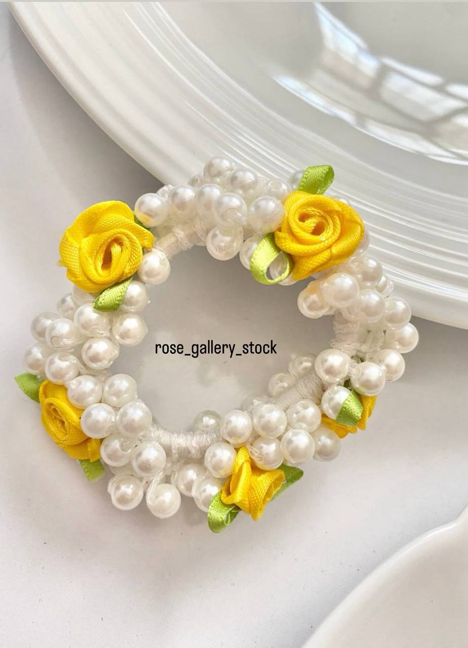 • طراحی مرواریدی با گلهای روبانی رنگی