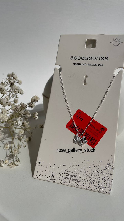 این گردنبند ظریف از نقره استرلینگ 925 ساخته شده و با دو آویز سگ براق تزئین شده است. درخشش کریستالهای اروپایی، جلوهای خاص و دوستداشتنی به آن بخشیده و انتخابی عالی برای استفاده روزمره یا هدیه دادن به عزیزانتان است. طراحی مینیمال و فانتزی آن مناسب تمام سنین و سلیقههاست.