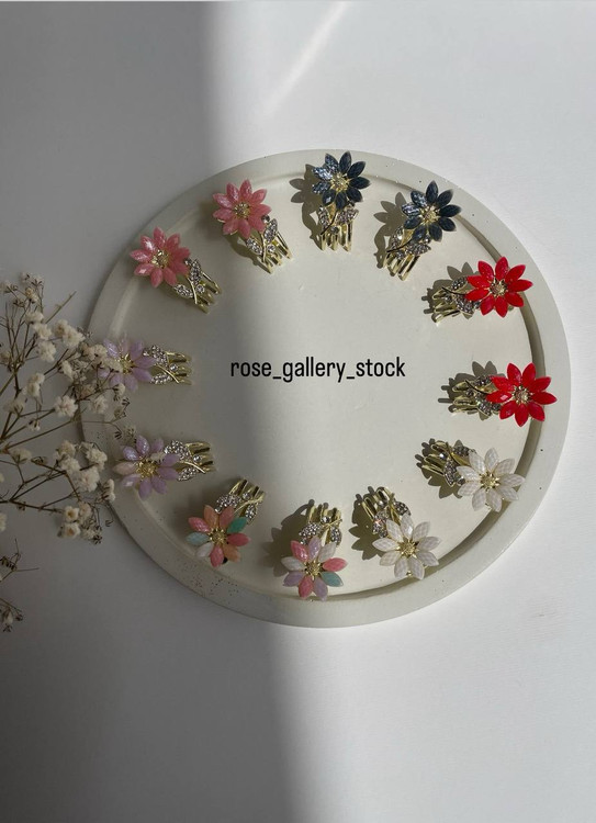 این گیرههای موی فانتزی با طراحی گل رزینی و تزئینات نگیندار، ظاهری ظریف، شیک و خاص به موهای شما میبخشند. ترکیب رنگهای ملایم و تند به همراه پایهی طلایی فلزی، این محصول را به گزینهای ایدهآل برای استایل روزانه، مهمانیها و مناسبتهای خاص تبدیل کرده است.