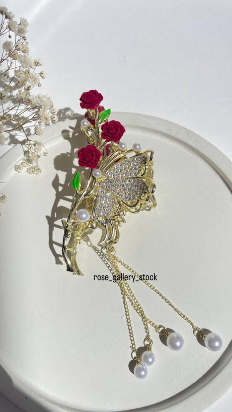 کلیپس پروانهای گلدار مخملی با آویز مروارید