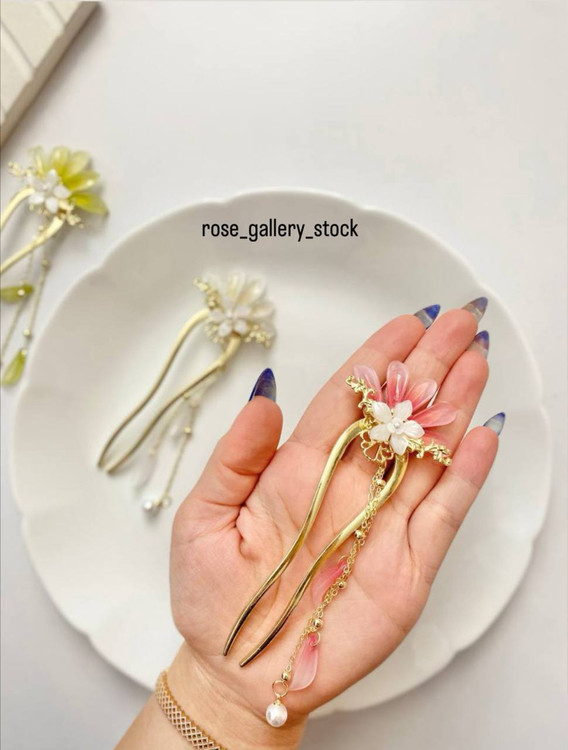 کانزاشی «هانا» با طراحی گلهای ظریف و آویزهای مرواریدی، برگرفته از استایل سنتی ژاپنی است که با ظرافتی مدرن بازطراحی شده. این اکسسوری ویژه، با دو شاخه فلزی طلایی و گلهای شکوفهدار، برای مراسم سنتی، استایلهای هنری و حتی عروسیهای خاص بسیار مناسب است. ترکیب رنگهای پاستلی با مروارید، زیبایی بینظیری به موهای شما میبخشد.