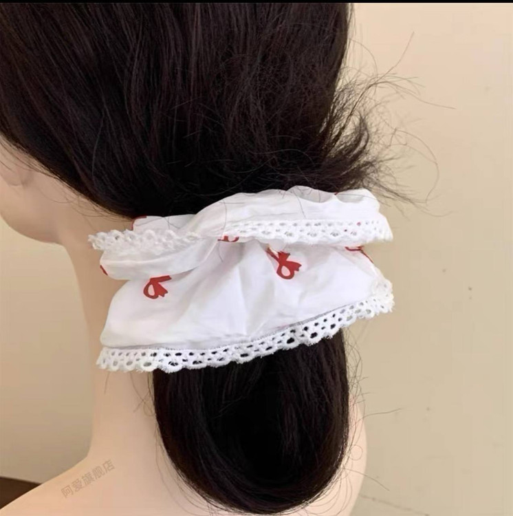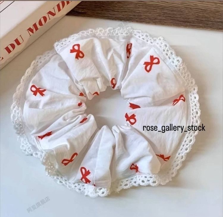 اسکرانچی مو از جنس پارچه ای (نخی) با طرح پاپیون چاپی در دو رنگ قرمز و مشکی، لبهدار با توری سفید قلاببافی شده. مناسب برای استفاده روزمره، مهمانی و استایلهای کژوال و دخترانه.
