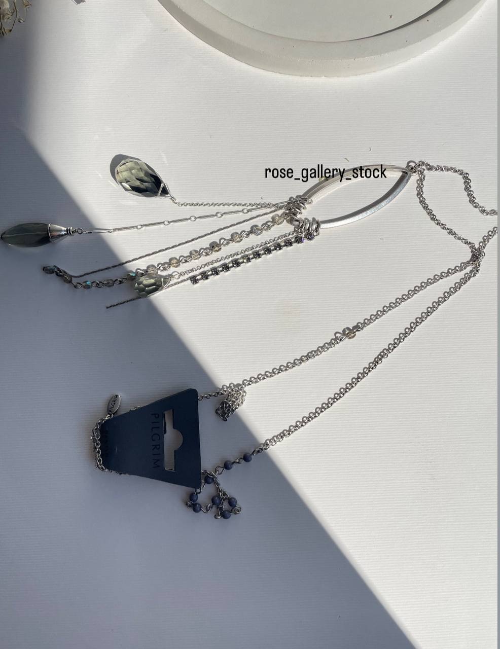 با طراحی الهامگرفته از طبیعت و ظرافتهای زنانه، رولباسی “اشک شب” از برند Pilgrim ترکیبی از زنجیرهای نقرهای، کریستالهای تراشخورده و آویزهای شیشهای است که جلوهای مینیمال و درخشان به استایل شما میبخشد. حلقهی بیضیشکل اصلی با زنجیرهایی آویخته شده که هر کدام با سنگهای شفاف و کریستالی تزئین شدهاند. مناسب برای استفاده روزمره یا مهمانیهای شبانه، این گردنبند انتخابی خاص برای بانوانیست که به استایل خاص و شیک اهمیت میدهند.