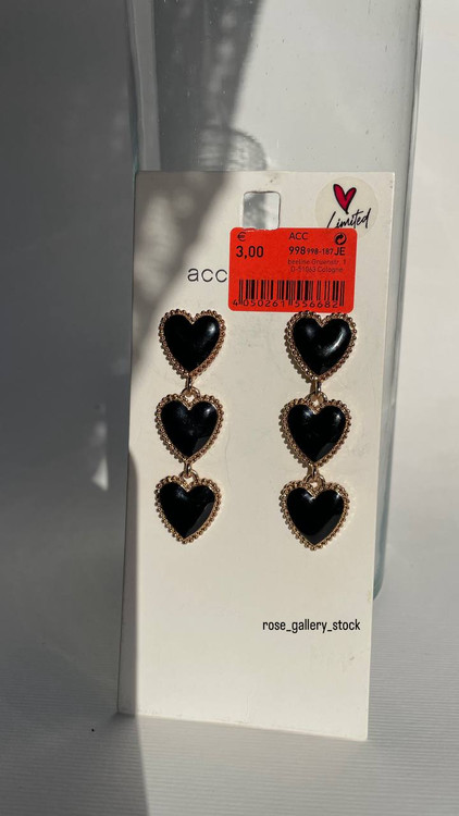 گوشوارهی شیک و خاص با طراحی سه قلب مشکی براق، قاب طلایی ظریف و سبک آویز. مناسب برای استایلهای مهمانی، روزمره و رسمی. این گوشوارهها با ظاهر خاص خود جلوهای متفاوت به استایل شما میبخشند.
