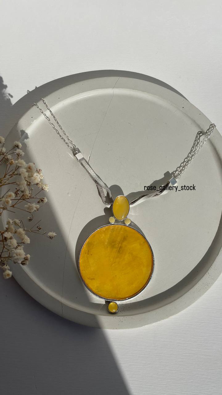 ✨ ویژگیها • جنس آویز: رزین رنگی دستساز • رنگ: زرد عسلی • جنس بند: ترکیب چرم نازک و زنجیر نقرهای • قطر آویز اصلی: حدود ۵ سانتیمتر • سبک طراحی: هنری و خاص • مناسب برای استفاده روزمره یا هدیهای متفاوت