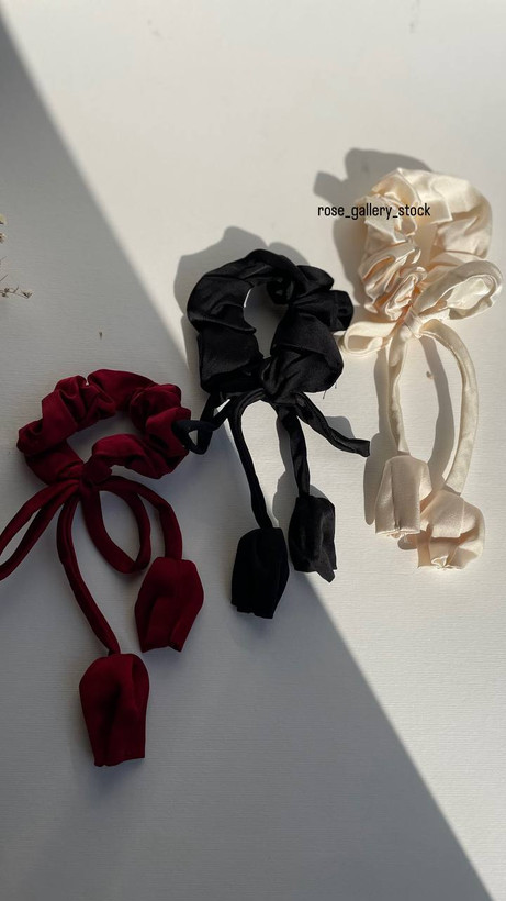 اسکرانچی پاپیونی ساتن با آویز لاله