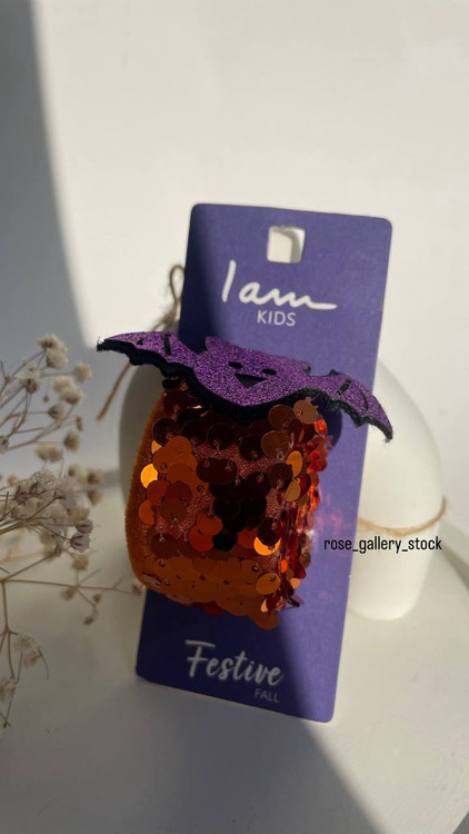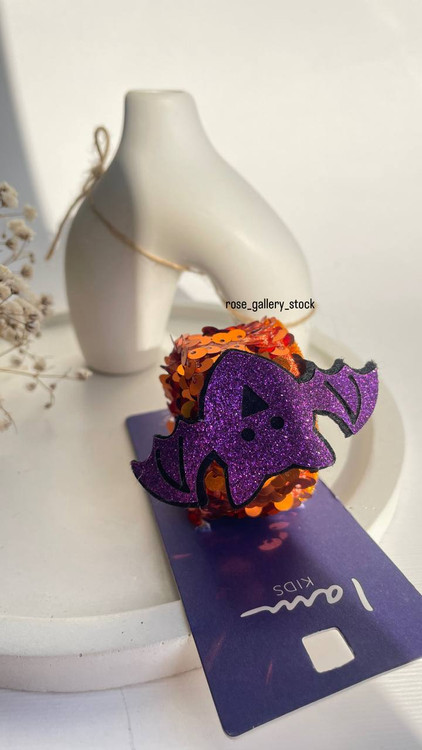 دستبند فنری کودکانه با طراحی جذاب هالووین، تزیینشده با پولکهای نارنجی و قرمز براق و خفاش بنفش اکلیلی. این اکسسوری خاص برای استایل پاییزی، جشنها و تم هالووین عالی است و به راحتی روی مچ دست قرار میگیرد.
