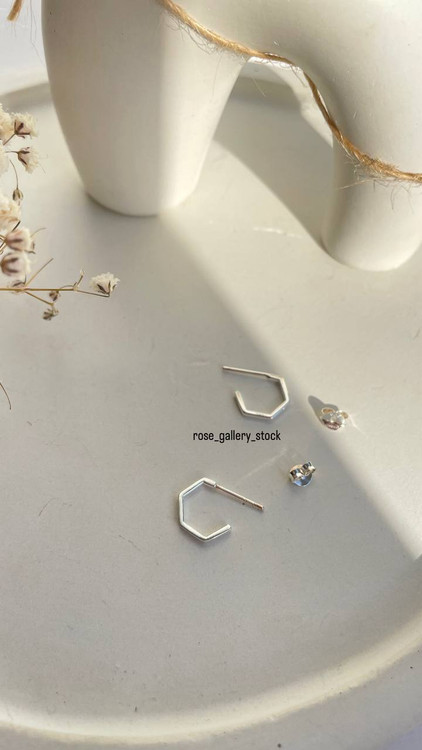 گوشواره نقرهای با طرح هندسی ششضلعی، ساخته شده از استرلینگ سیلور با کیفیت بالا. طراحی مینیمال و شیک این گوشواره برای استفاده روزمره و استایلهای رسمی و کژوال مناسب است.