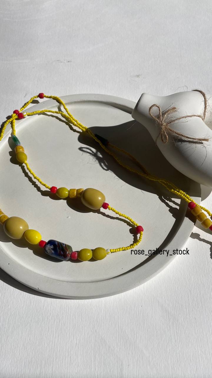 این گردنبند دستساز با ترکیبی از مهرههای رنگارنگ و طراحی خاص، انتخابی ایدهآل برای استایلهای بوهو و وینتیج است. ترکیب رنگ زرد، قرمز و آبی، جلوهای خاص و پرانرژی به استایل شما میبخشد. مناسب برای استفاده روزمره، مهمانیها و ترکیب با لباسهای تابستانی.