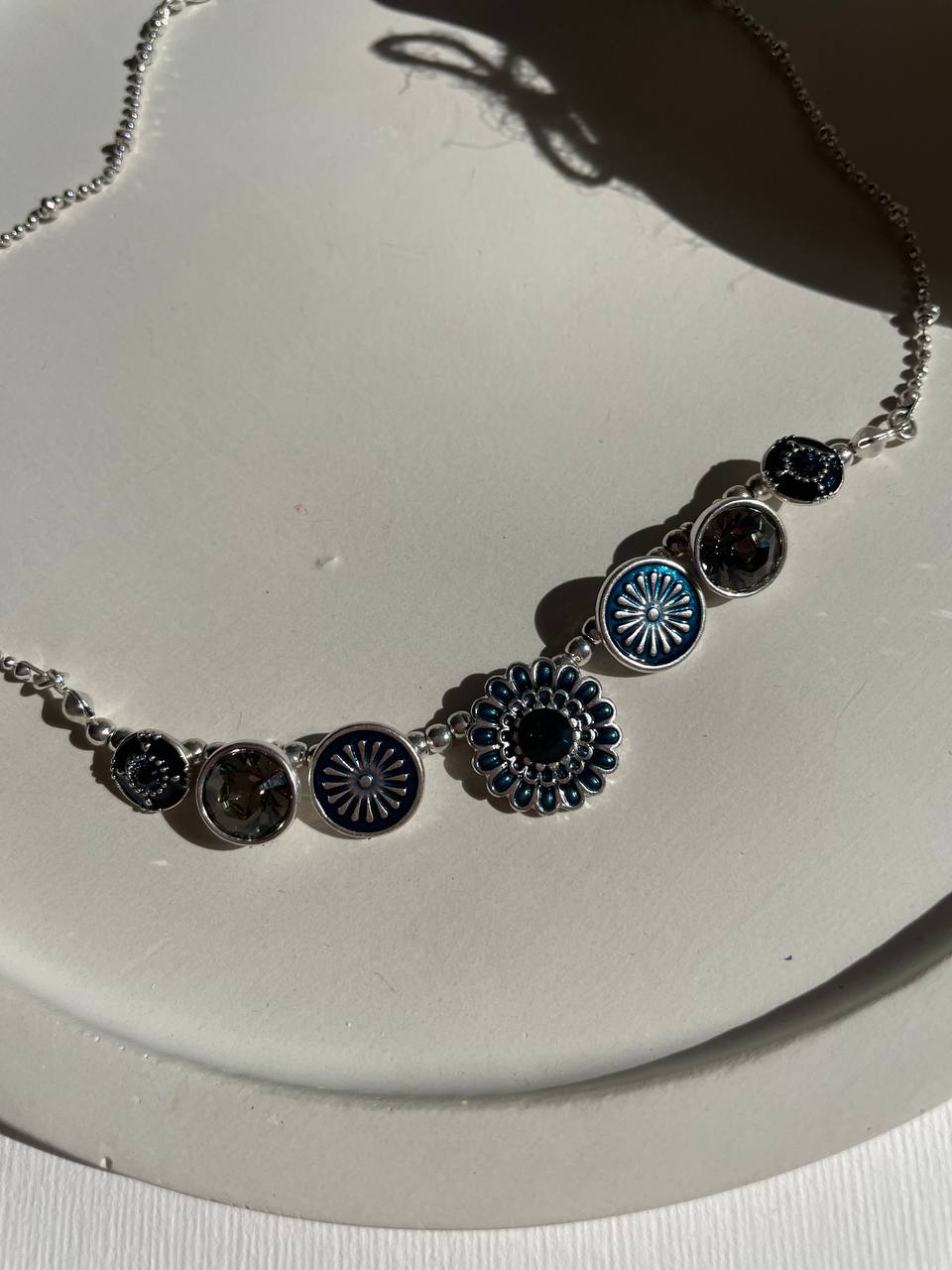 ویژگیها: • طراحی خاص و ترکیب عناصر گل و هندسی • جنس استیل با آبکاری نقرهای • دارای سنگهای تزئینی براق • مناسب برای استایلهای کلاسیک و مدرن