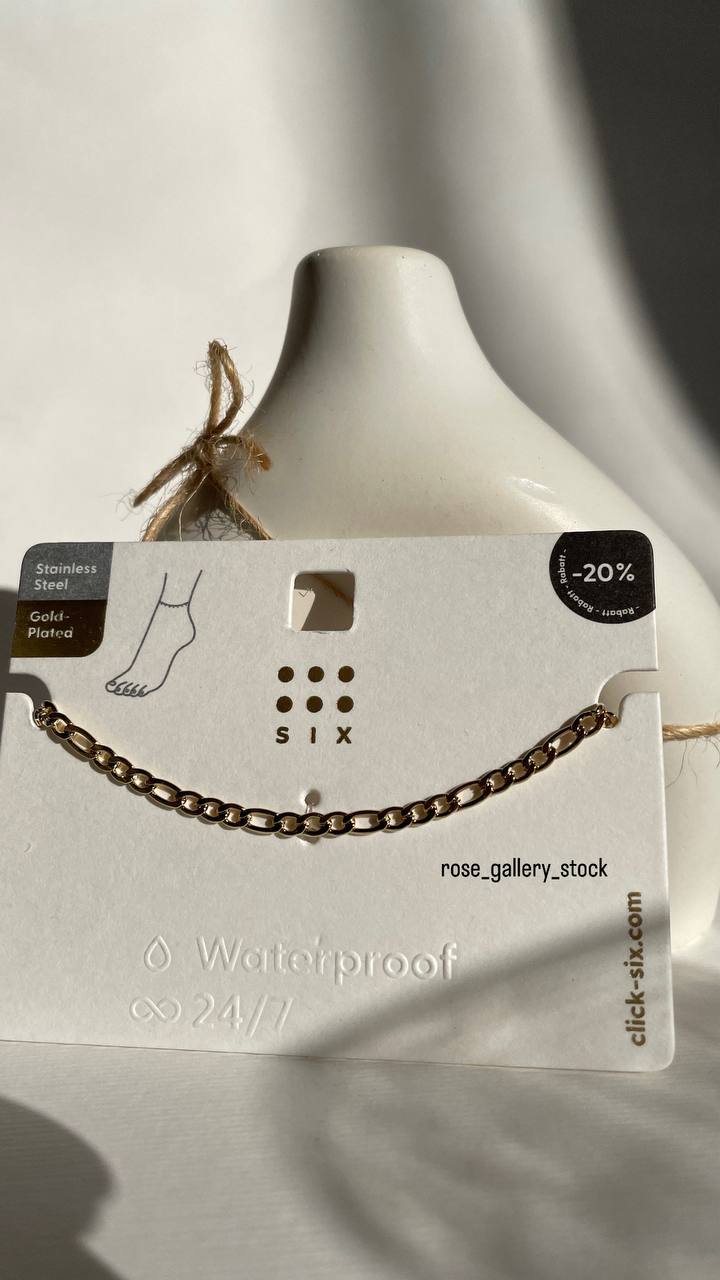 این پابند زنجیری طلایی از برند محبوب SIX ساخته شده از استیل ضد زنگ با روکش طلا است. طراحی ساده و شیک آن مناسب استفاده روزمره بوده و به دلیل خاصیت ضدآب میتوانید بدون نگرانی از تغییر رنگ، بهطور ۲۴/۷ از آن استفاده کنید. این پابند استایلی مینیمال و خاص به استایل شما میبخشد و انتخابی ایدهآل برای هدیه نیز میباشد.