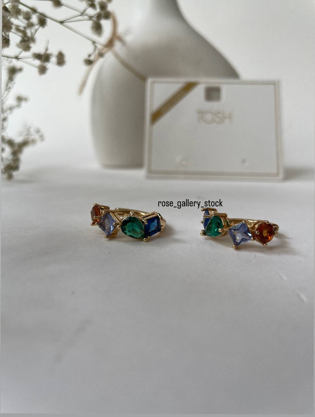 • طراحی: حلقهای با چند نگین رنگی (بنفش، سبز، آبی، کهربایی)