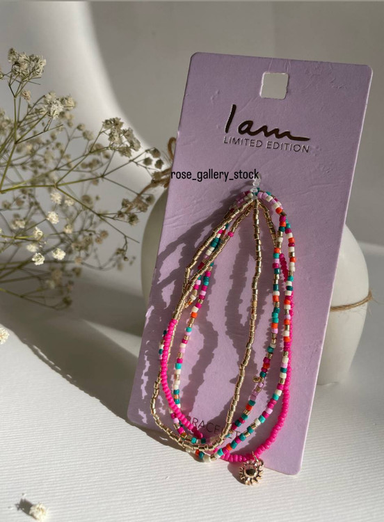 این دستبند چند رشتهای با طراحی شاد و پرانرژی، ترکیبی از مهرههای رنگی و طلایی است که جلوهای خاص و متفاوت به استایل شما میبخشد. وجود آویز کوچک فلزی در انتها، ظرافت و جذابیت بیشتری به آن داده است. مناسب برای استفاده روزمره، استایلهای تابستانی و ست کردن با سایر اکسسوریهای مینیمال.