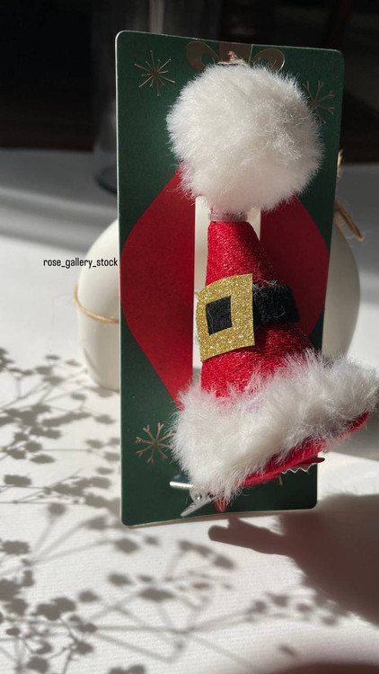 این گیرهی تزئینی با طراحی خلاقانه و فانتزی به شکل لباس بابانوئل ساخته شده و انتخابی عالی برای تزئین درخت کریسمس، هدایا یا حتی دکور خانه است. ترکیب رنگ قرمز، سفید و طلایی در کنار جنس پارچه براق و پرزهای پشمی، جلوهای زیبا و خاص به فضا میبخشد.