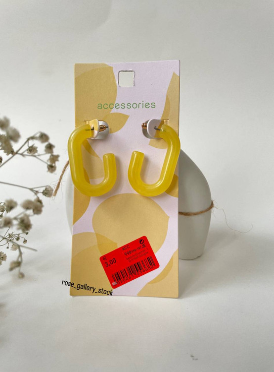گوشواره حلقهای زرد رنگ با طراحی مدرن و خاص، ساخته شده از پلاستیک سبک و مقاوم. رنگ شفاف و جذاب این گوشواره، استایلی پرانرژی و تابستانی به شما میدهد. مناسب برای استفاده روزمره و ست کردن با انواع استایلهای اسپرت و کژوال.