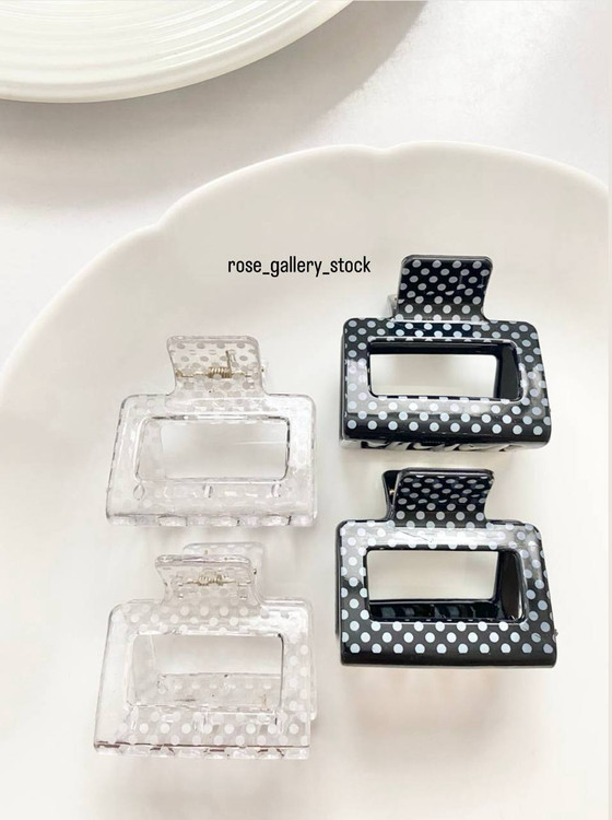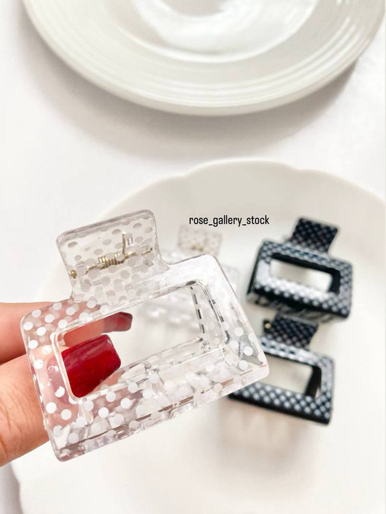 کلیپس مو مستطیلی با طراحی خاص خالخالی، مناسب برای استفاده روزمره و مهمانی. این کلیپسها بهخاطر استحکام و طراحی زیبا، موها را بهخوبی نگه میدارند و استایل شما را جذابتر میکنند. در دو رنگ مشکی و شفاف با خالهای سفید عرضه میشوند.