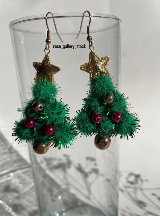 این گوشواره زیبا با الهام از درخت کریسمس طراحی شده و با ستاره طلایی در بالا و توپکهای رنگی تزیین شده است. ترکیب سبز شاد، طلایی براق و صورتی فانتزی آن، استایلی خاص و پرانرژی به شما میبخشد. انتخابی بینظیر برای مهمانیهای زمستانی و هدیهای جذاب برای شب کریسمس.