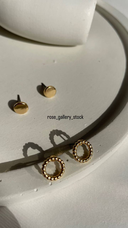 این مجموعه گوشواره شامل دو جفت گوشواره با طراحی متفاوت است. یکی از جفتها به شکل حلقهای ظریف از مهرههای کوچک طراحی شده است، جفت دیگر دارای سطحی صاف و براق است، و جفت سوم دارای طراحی خاص با جزئیات رنگی میباشد.