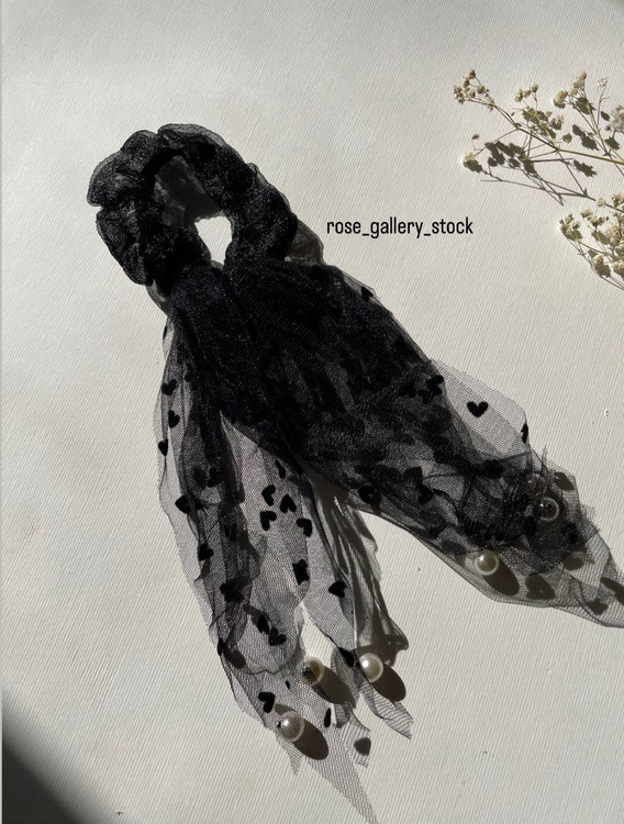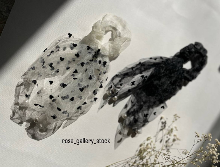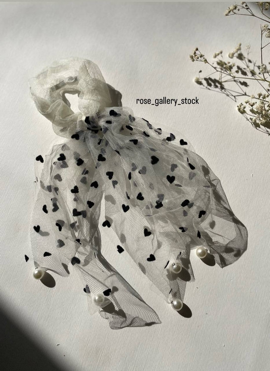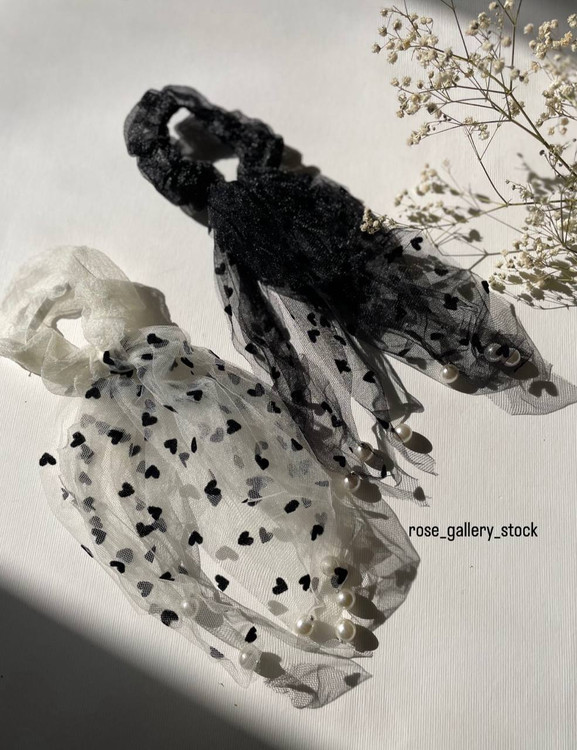 کش مو توری قلبی مرواریدی (مشکی و سفید)