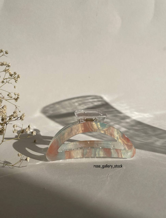 کلیپس مو هلالی طرح مرمری با رنگهای پاستلی شفاف، یک انتخاب شیک و لطیف برای استایل روزانه و مهمانی است. طراحی هلالی باعث میشود موها را به خوبی جمع کرده و جلوهای مرتب و خاص به موها بدهد. رنگهای ملایم صورتی، آبی و کرمی با بافت مرمری، این کلیپس را به گزینهای محبوب برای طرفداران استایلهای مینیمال و دخترانه تبدیل کرده است.
