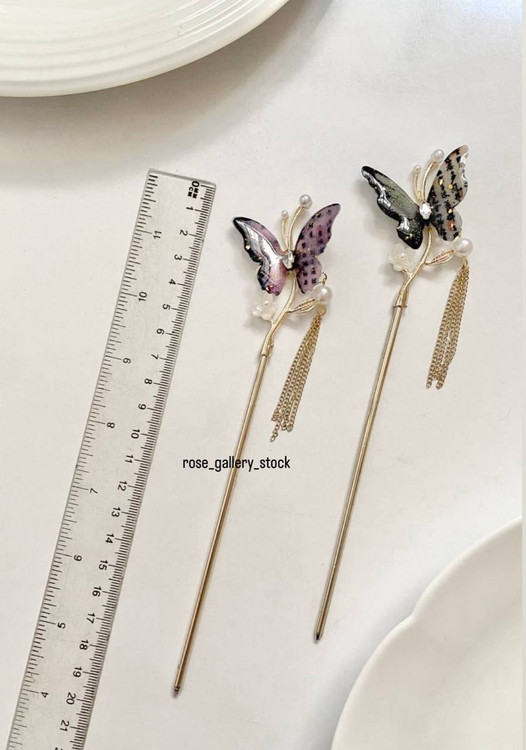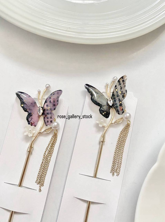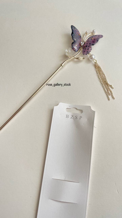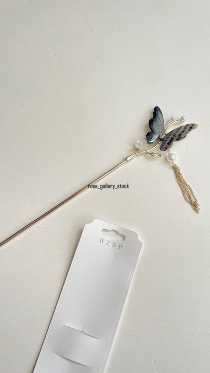 این سنجاق شینیون کانزاشی با طراحی پروانهای براق و تزیین مروارید، جلوهای خاص و ظریف به مدل موی شما میبخشد. بالهای پروانه با تکنیک کانزاشی ساخته شدهاند که جلوهای هنرمندانه و خاص ایجاد میکند. آویز زنجیری طلایی و مرواریدهای کوچک، این اکسسوری را به انتخابی ایدهآل برای مهمانیها و مراسم رسمی تبدیل کرده است.