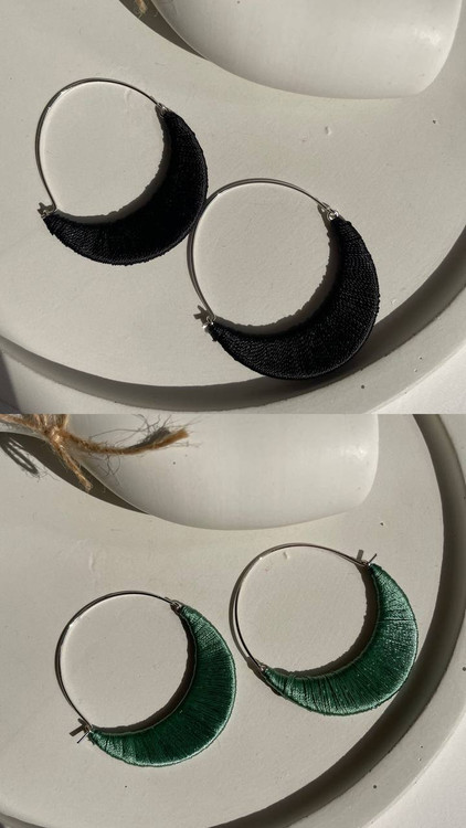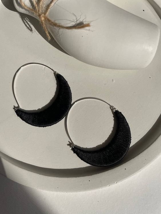 این گوشوارههای شیک از برند I Am با طراحی خاص و مینیمال، ترکیبی از حلقه فلزی نقرهای و بافت پارچهای مشکی را ارائه میدهند. سبک منحصربهفرد این گوشوارهها، آنها را به انتخابی عالی برای استایلهای اسپرت، مینیمال و حتی مجلسی تبدیل کرده است.