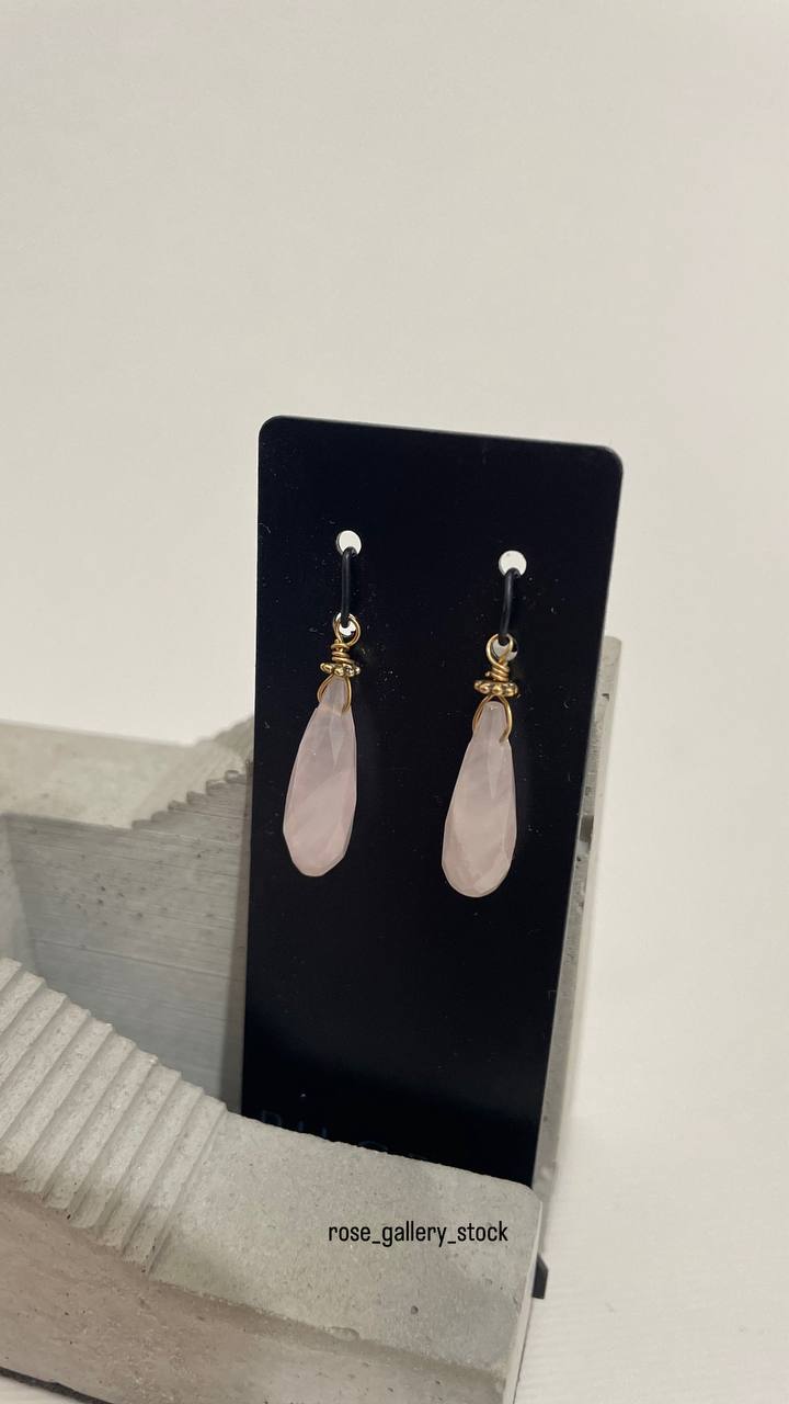 آویز گوشواره رز کوارتز صورتی | آویز سنگ طبیعی مینیمال