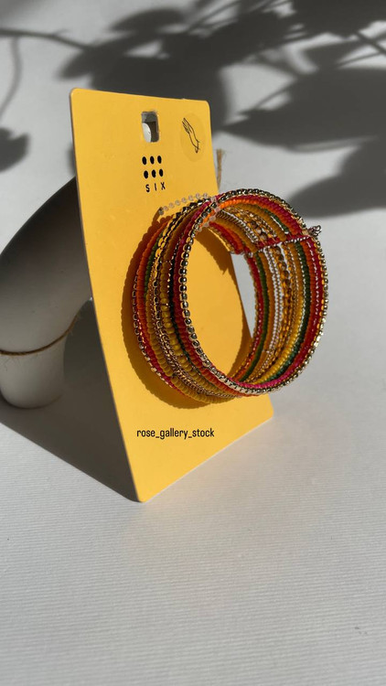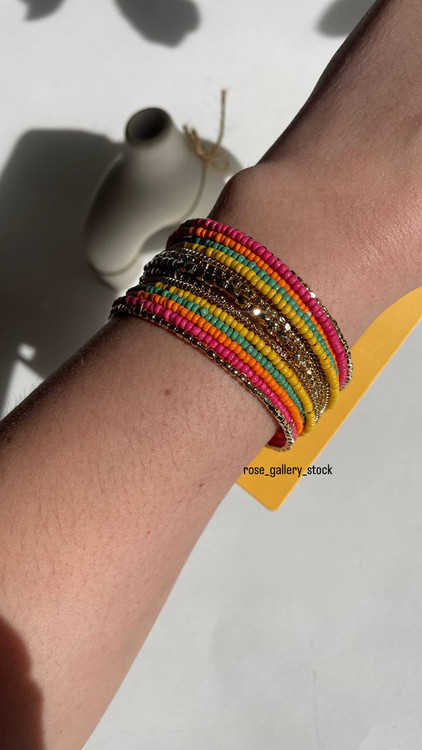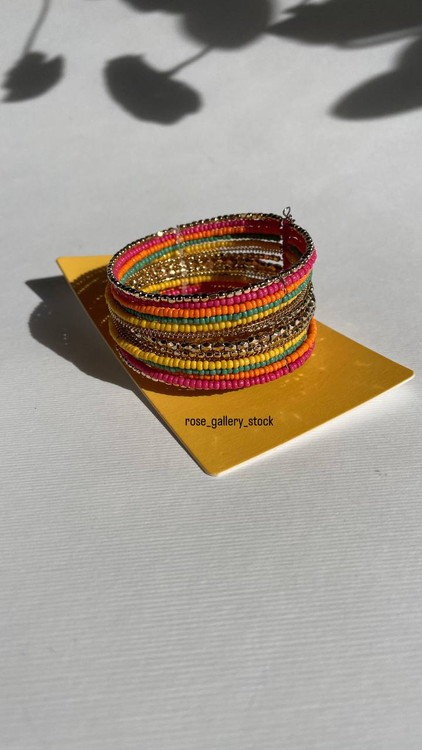 این ست دستبند النگویی مهرهای با ترکیب رنگهای گرم و زنده، انتخابی ایدهآل برای استایلهای روزمره و تابستانی است. طراحی چندلایه و سبک آن باعث میشود بهتنهایی یا در کنار ساعت و زیورآلات دیگر جلوهای خاص و چشمگیر داشته باشد. مناسب استفاده روزانه، دورهمیها و استایلهای کژوال و بوهو.