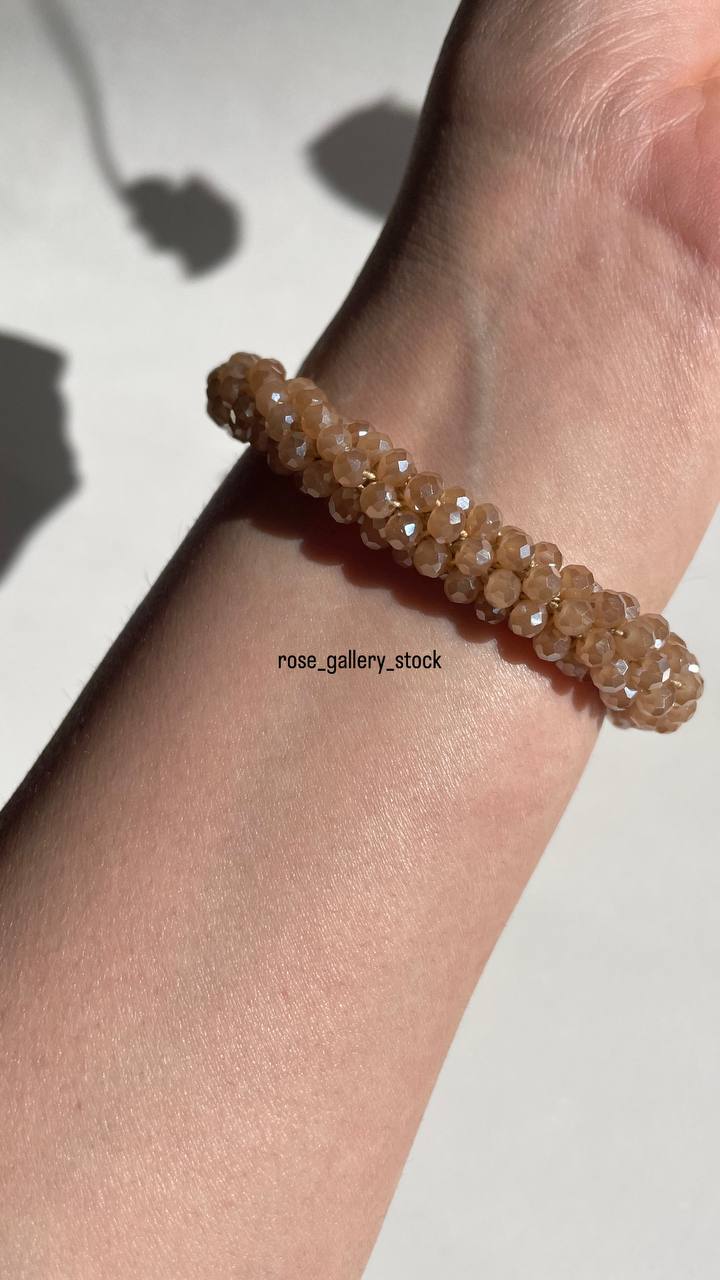 دستبند تمامکش کریستالی رنگ کرم-قهوهای (Mocca) – مدل Limited Edition