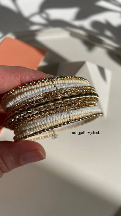 این دستبند زیبا، نمادی از ظرافت و هنر دست در استایل بوهو (Boho) است. طراحی این کار به گونهای است که با بستن یک قفل، ظاهر چندین دستبند ظریف و هماهنگ را روی مچ خود خواهید داشت. ترکیب رنگهای کرم، سفید و طلایی، درخششی ملایم و گرم به دستان شما میبخشد که هم با استایلهای روزمره و هم با لباسهای نیمهرسمی به زیبایی ست میشود.