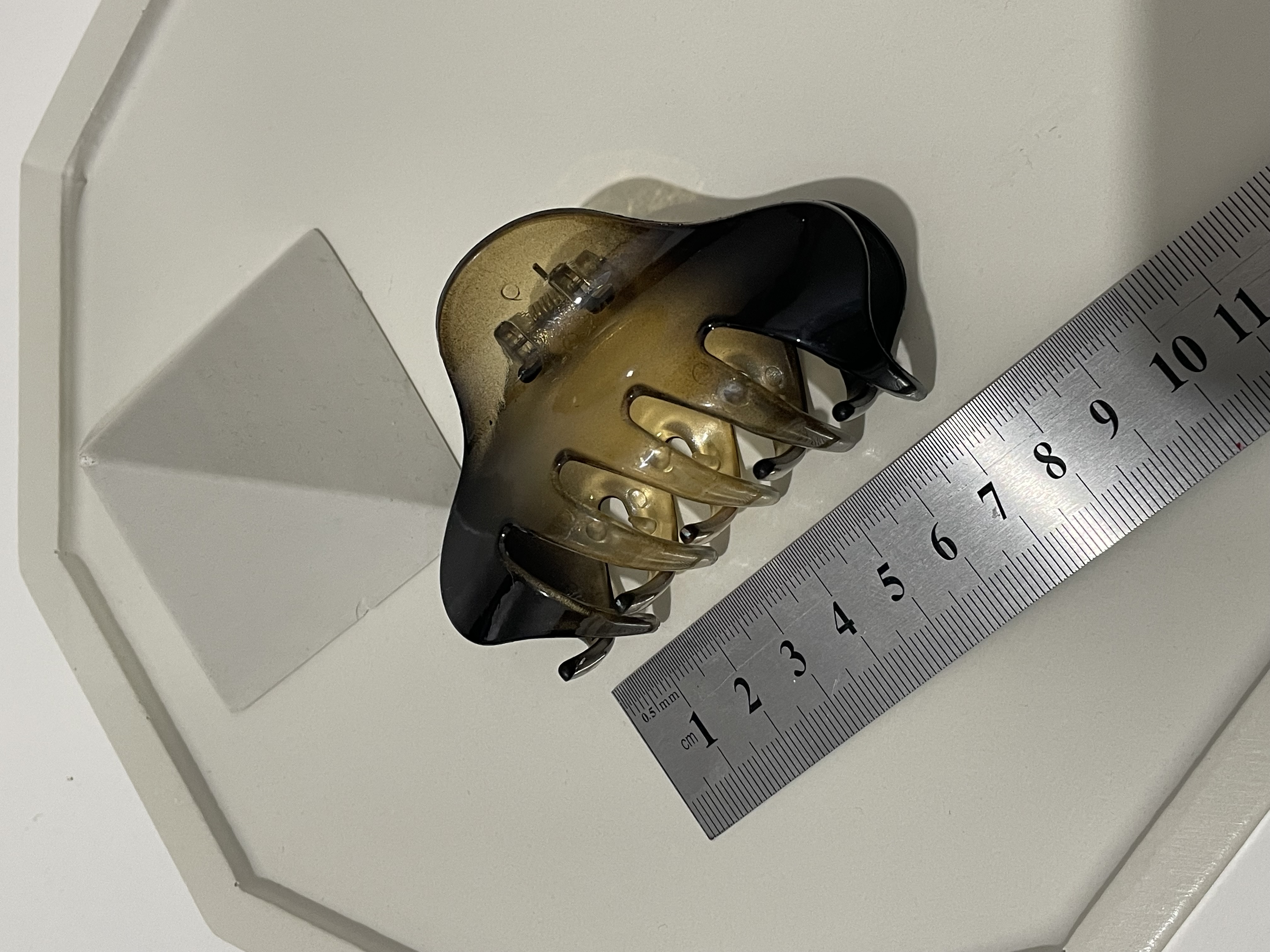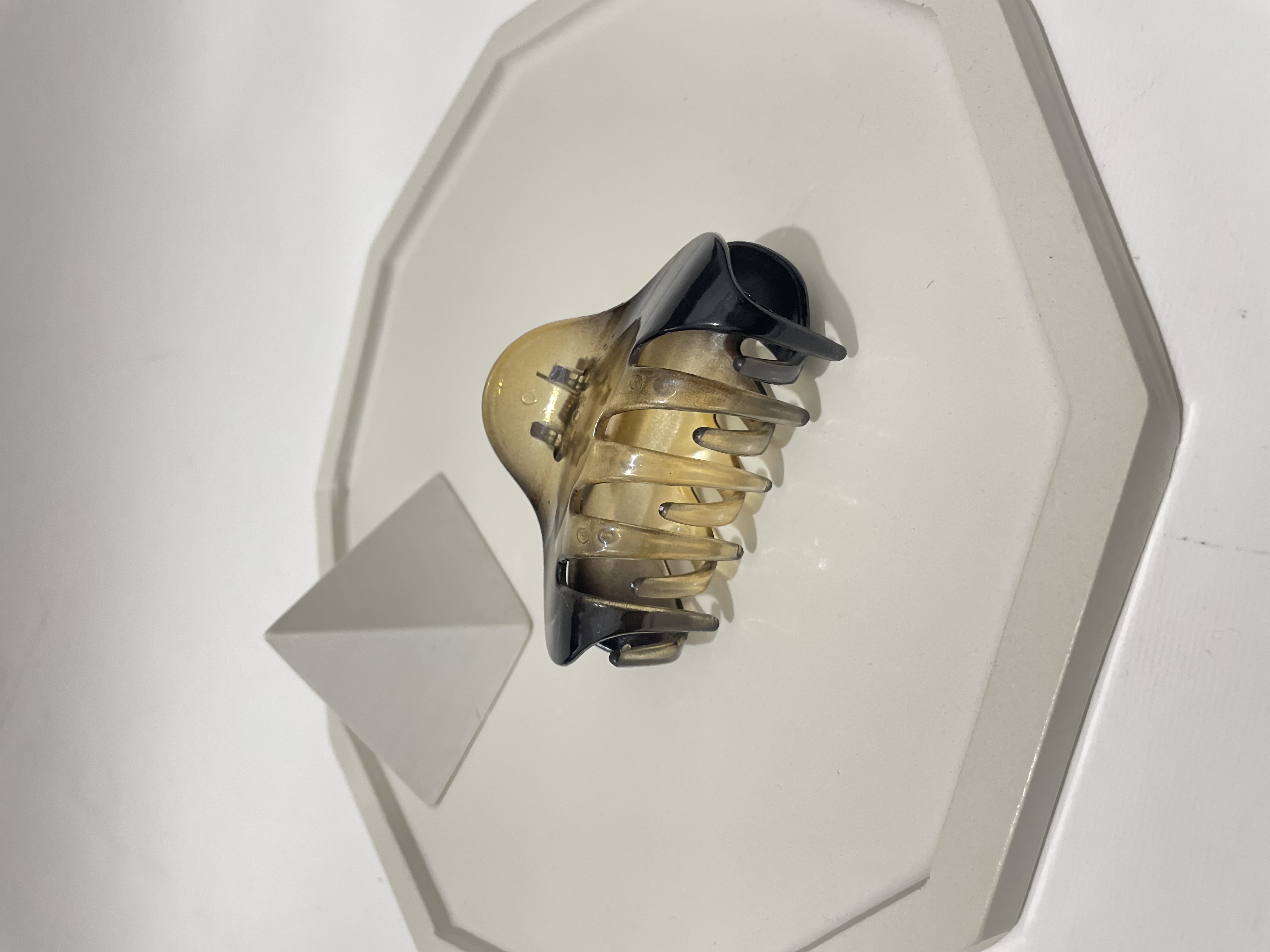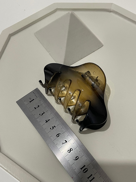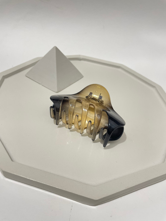 این کلیپس مو با طراحی پنجهای (Claw Clip) یکی از کاربردیترین اکسسوریها برای جمع کردن سریع و شیک موهاست. ویژگی متمایز این محصول، رنگآمیزی سایهروشن (Ambre) آن است که از قهوهای تیره (مشابه طرح پلنگی) به عسلی شفاف تغییر میکند.