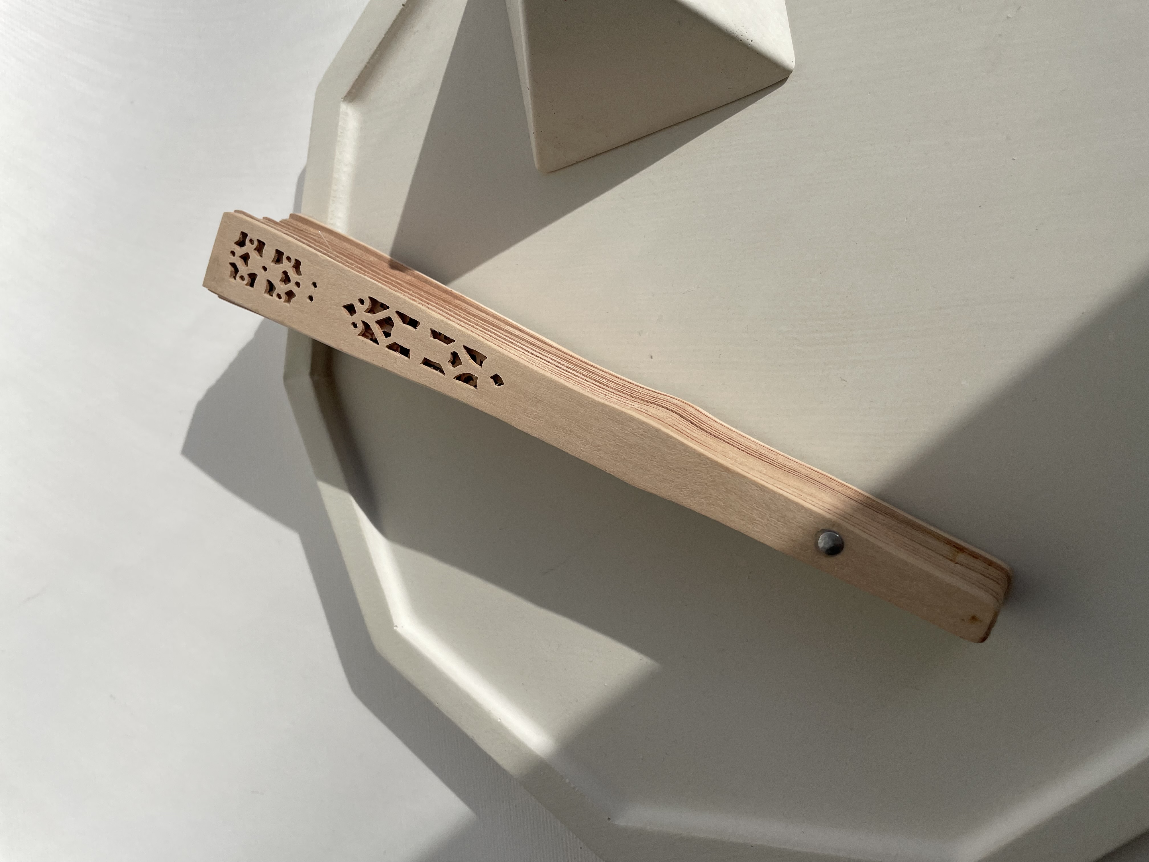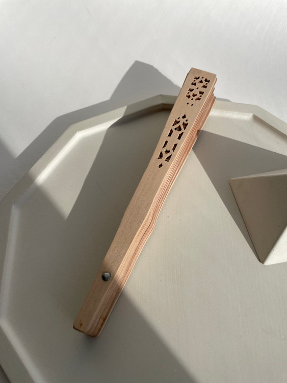 بادبزن چوبی طرح صندل با حکاکی مشبک و نقش گل