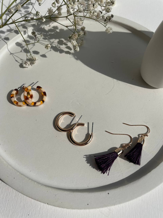 مجموعهای از سه مدل گوشواره متنوع که هر کدام سبک خاص خود را دارند: