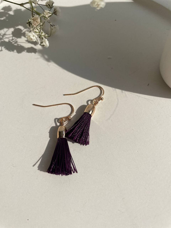 • گوشواره منگولهای بنفش: یک طرح خاص و متفاوت که به استایلهای بوهو و اسپرت جلوهای زیبا میبخشد.