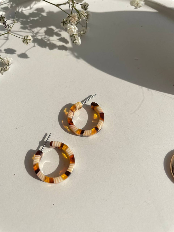 • گوشواره حلقهای رنگی: طراحی خاص با ترکیب رنگهای گرم، مناسب برای استایلهای روزمره و تابستانی.