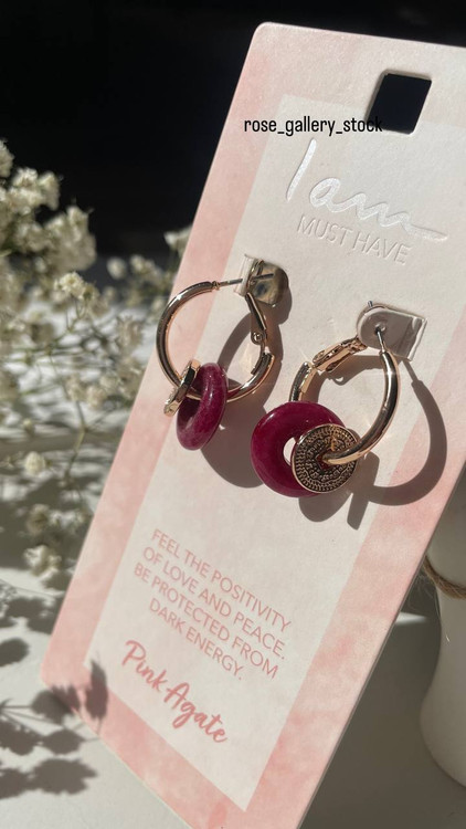 این گوشوارههای زیبا با طراحی حلقهای طلایی و سنگ طبیعی آگات صورتی، نمادی از عشق، آرامش و انرژی مثبت هستند. ترکیب ظریف فلز طلایی با رنگ گرم و ملایم صورتی، جلوهای خاص و زنانه به استایل شما میبخشد.